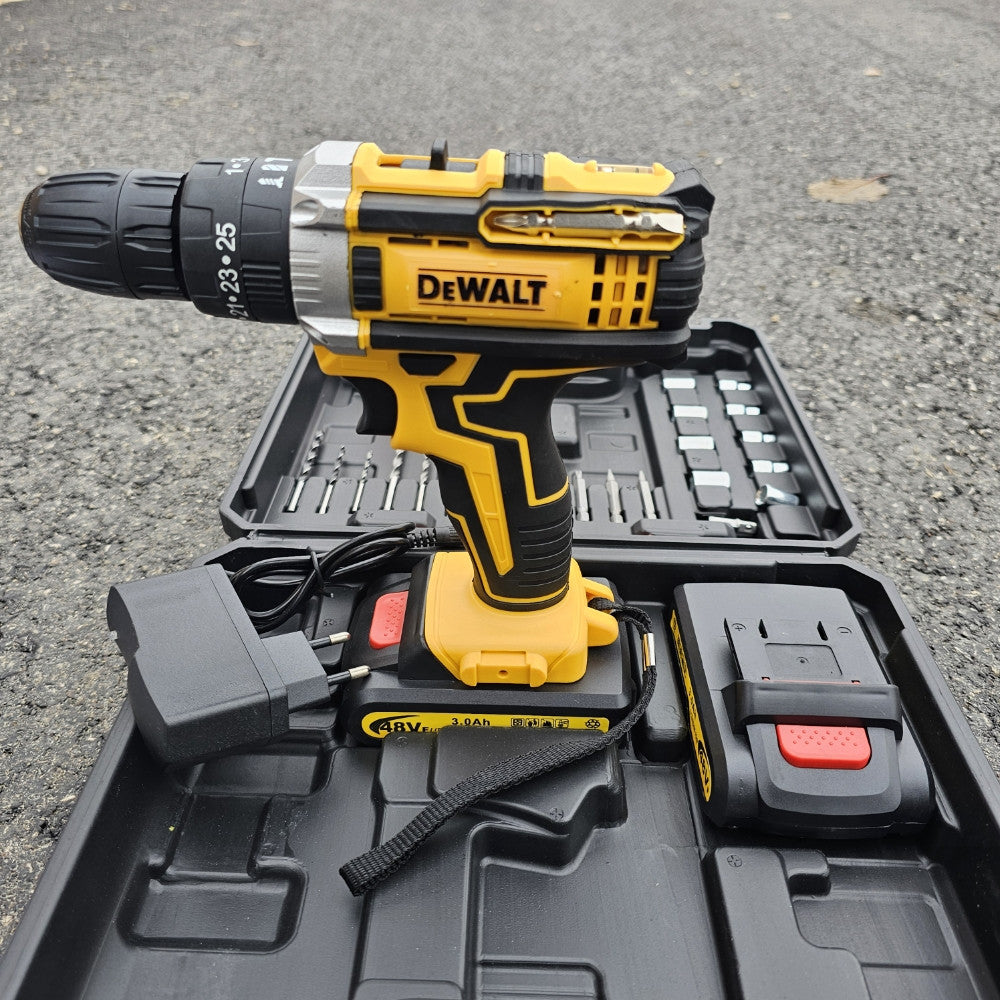 Savršen alat za sve one koji žele pouzdanu bušilicu, bilo da se radi o profesionalnim zadacima ili kućnim projektima. Opremljena s dvije snažne 48V LITHIUM baterije, pruža dugotrajnu autonomiju, što znači manje prekida i više produktivnosti.